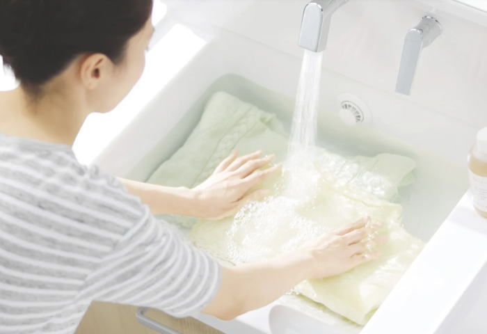 TOTOのクリーン技術「きれい除菌水」が、歯ブラシや排水口の汚れ・菌を抑えます。